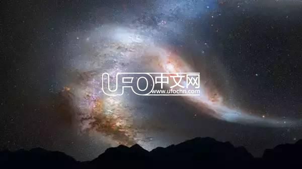 37.5亿年后银河系与仙女座星系相遇的夜空效果图
