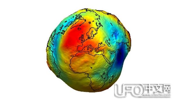 [图片说明]:由GOCE的数据所绘制的大地水准面,可以清晰地看到印度洋的“凹陷”和北大西洋的“突起”。版权:ESA。