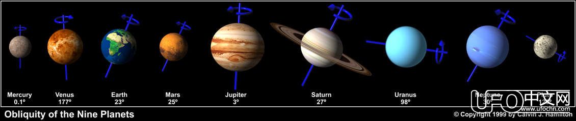 主要天体的转轴倾角(数据来自百度)