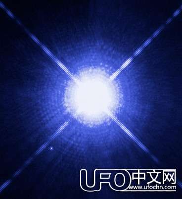 拍摄到的天狼星A和天狼星B,白矮星天狼星B位于左下方。