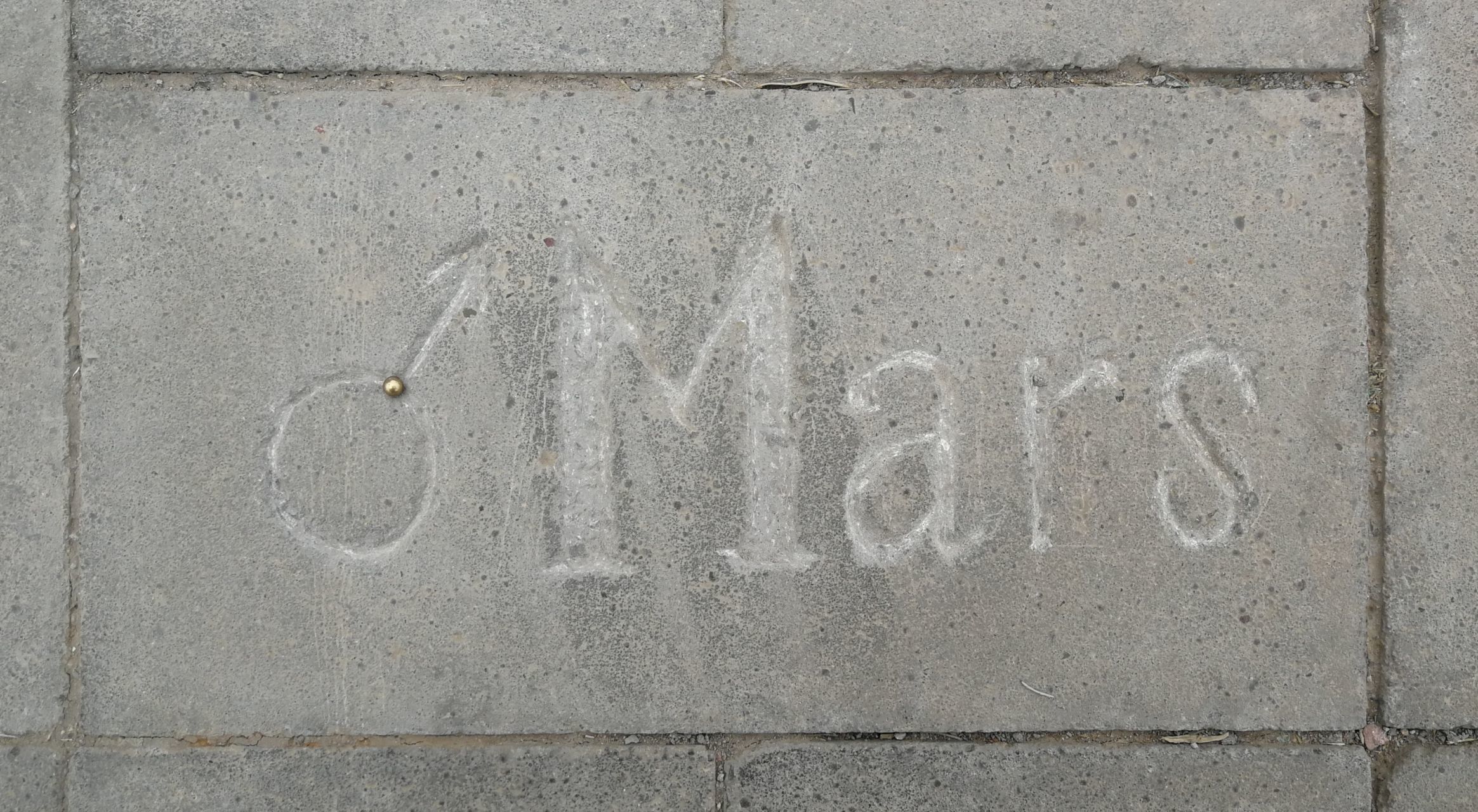 再往市区方向相应位置地砖上分别刻出四大内行星的标志和英文名字: