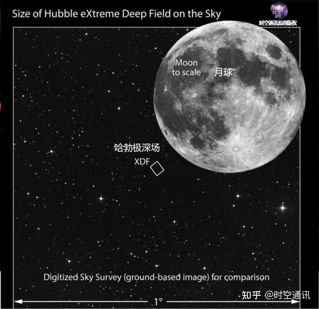 这组照片分别称为:哈勃深空视场(简称HDF)、哈勃超级深场(简称HUDF)、哈勃极端深场(简称XDF)。现在,我们只了解后面两张照片,就足以说明这个问题了。