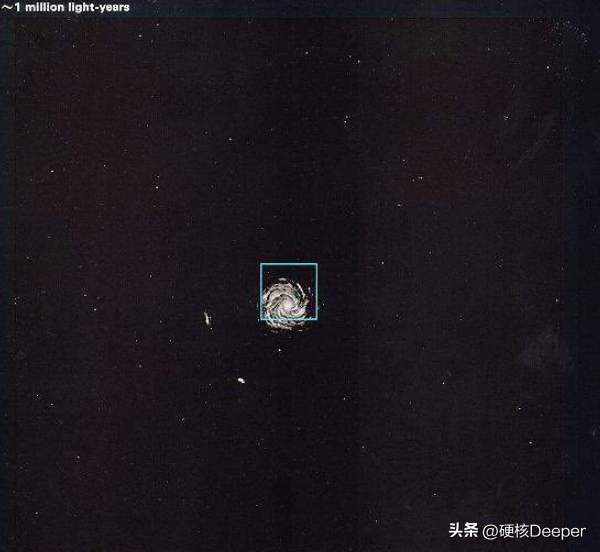 记住这个小光点,那是我们的银河系,这个距离为1000万光年,在这个距离基础上,我们庞大的银河系也不过就是一盏忽明忽暗的小灯。