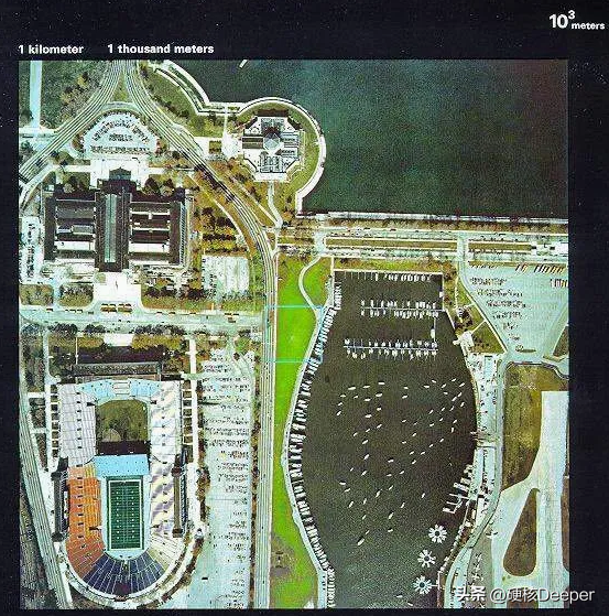 现在我们看到的是美国一座城市中的场景:湖滨大道,士兵运动场,飞机跑道,船码头,博物馆。