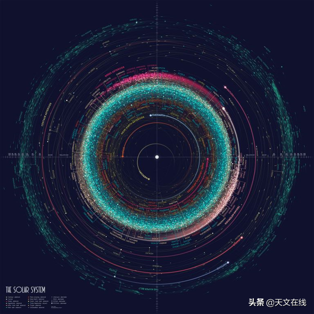 她最新的作品是一张地图,显示了太阳系中18000多颗小行星的所有轨道。其中包括10000颗直径超过10公里的小行星,以及约8000个未知大小的天体。