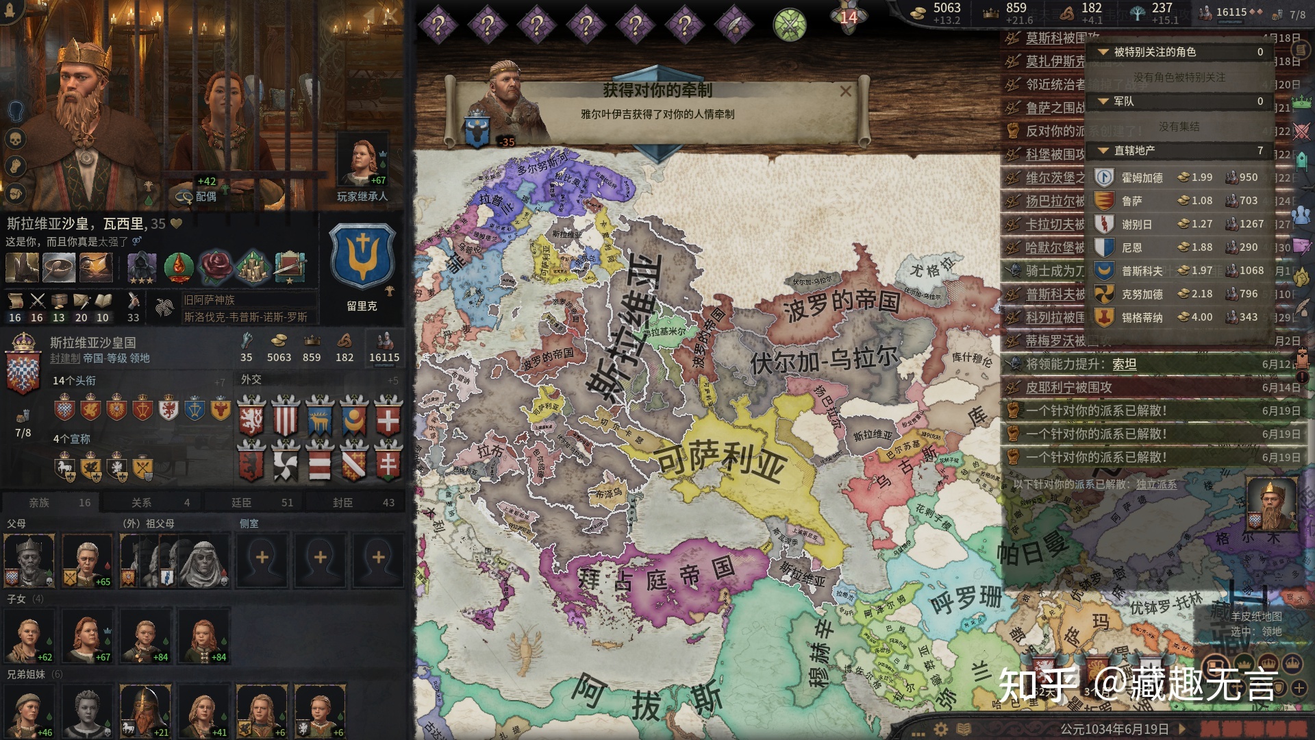 以下是CK3里的留里克家族史,第一个全球环游的梦想。
