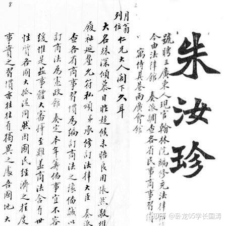 光绪三十二年(1906年)被选派到日本东京法政大学读法律,两年后学成归国。制定商法是晚清修律的重要任务之一,朱汝珍于宣统元年(1909年)被任命为法律馆纂修,前往各地商埠调查情况。苏州是清代商业繁华之地,备受关注,于是就出现了文章开头的一幕,朱汝珍到苏州开展“商事习惯”调查。江苏省苏州市档案馆馆藏商会档案中有两封朱汝珍写给苏州商会的信函,其中一封写道:“先从事调查,实虑及此窃维吾国商业发达最早,贵省交通利便,民性活泼,贸易日见繁盛,尤占世界商业重要之地位。”