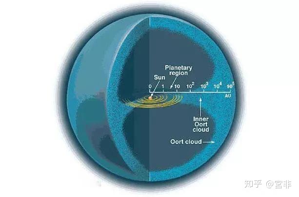 太阳系的边界在那?传统意义上,人们认为「日球层顶,heliopause」,也就是来自太阳的太阳风遭遇到星际介质而停滞的边界,为太阳系的边缘,一般认为这个界面在距离太阳 100 个天文单位,也就是 太阳系是否有可能还藏有第九大行星?681 / 作者:Runlinh / 帖子ID:110567 处 (注:一个天文单位约 太阳系是否有可能还藏有第九大行星?825 / 作者:Runlinh / 帖子ID:110567 )。根据旅行者一号 (Voyager 1) 探测器发回的数据表明,接收到的太阳风带电粒子越来越少,而接收到的星际带电粒子越来越多,就说明开始进入了星际空间。目前目前大约飞离地球 太阳系是否有可能还藏有第九大行星?46 / 作者:Runlinh / 帖子ID:110567 ,刚好飞离太阳系,但这仅是狭义的太阳系边界。广义的太阳系边缘是以太阳的“引力范围”来定义,科学家认为奥尔特云 (Oort cloud) 是距离太阳 5-10 万天文单位处存在着的一种球状云团,它在外围包裹着太阳系,如果奥尔特云真的存在,它被认为是太阳系的理想边界