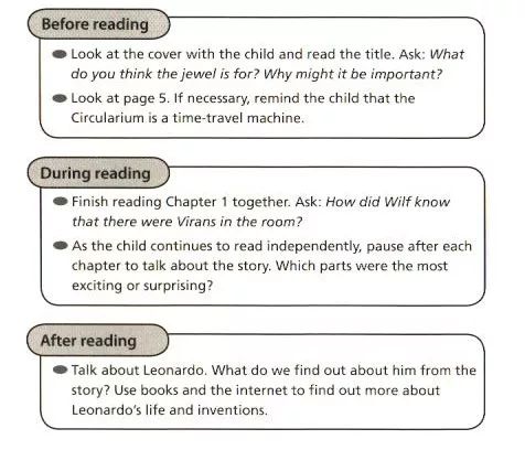 每本书的导读部分,包括About this Book(简介)、Before reading(阅读前)、During Reading(阅读中)、After Reading (阅读后),养成孩子阅读中的好习惯,善于思考。