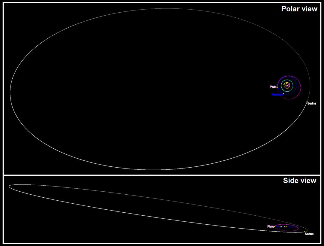 2003年,加州理工大学的麦克·布朗团队(包括Chad Trujillo和David Rabinowitz,麦克·布朗就是后来把冥王星踢出九大行星的那位大佬)发现了直径约1000公里的矮行星Sedna,不仅轨道极其椭圆,而且距离太阳很远,即使是近日点也远远大于冥王星到太阳的距离了,当时的人们以为Sedna是一个另类。