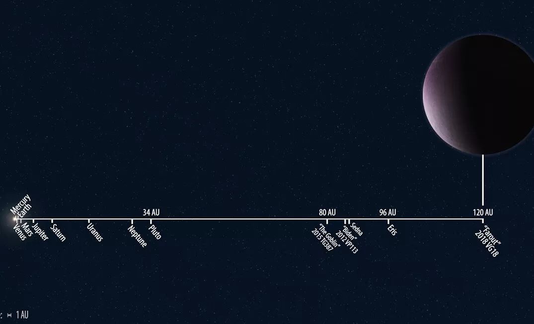 2018年底,Sheppard团队又宣布新发现了一颗天体2018 VG18[7]。这颗天体直径约500 公里, 唯一的独特之处在于它特别远——距离太阳约120个天文单位——是截止当时人类发现的,位于太阳系中的,距离太阳最远的天体。
