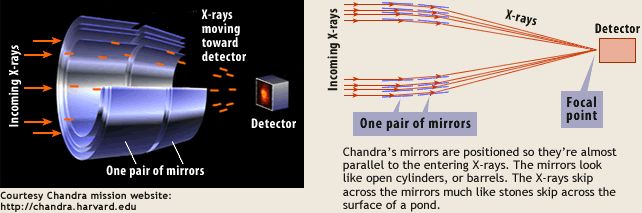 这时候就轮到财大气粗的美帝出场了。钱德拉 X 射线望远镜,正面硬扛以上麻烦,大力出奇迹;造价:16.5 亿美元,1999 年币值。对了,地球大气还会把 X 射线挡个精光,你得把这玩意儿送上天,于是又花掉三亿美元发射费用;后续的运行、监控、给科学家拨款吃饭,还得再砸进去三个亿。