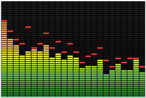 与其计较这一堆密密麻麻的小点儿每个都是啥,不如研究它们的统计意义。如果对这个全天图做球谐函数展开(可以理解为求取这个全天图的“空间频率”下的谱,思路与通过傅里叶变换求取某个信号的谱是一样的,只是球面函数的正交基是球谐函数),就像你在电脑上用某些播放器听音乐时在播放器窗口里看到的声音的谱那样: