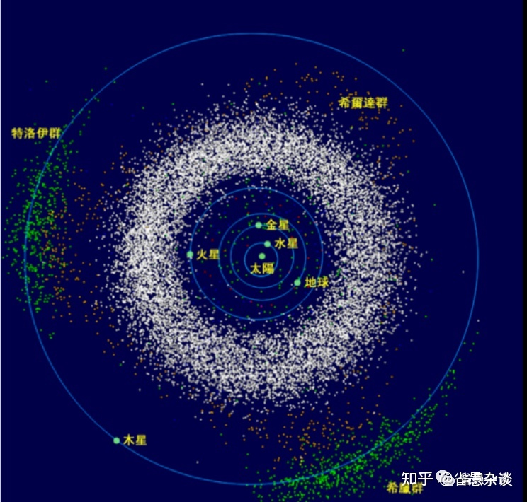 在已经被编号的120437颗小行星中,有98.5%是在这里被发现的。换言之,这十几万颗小行星就在此处围绕着太阳做椭圆运动。