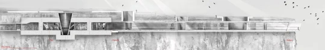 未来。回到地面后,游客可以沿着场地自由地返回,以新的视角回顾地下空间。一个拟建的观景台将升入天空,让人们可以看到该地点的爆炸性叙述。