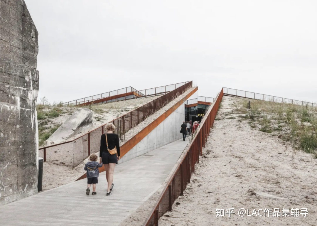 Tirpitz Museum将一个历史悠久的德国二战碉堡改造和扩展成一个开创性的文化综合体,包括在一个结构中的四个展览,无缝地嵌入丹麦西部Blavand的受保护海岸。与二战碉堡的厚重体积相反,2800平方米的博物馆巧妙地出现在一系列精确切入景观的交叉点上。与历史上堡垒的厚重和侵入性的regelbau建筑相反,新的提尔皮茨精确地切入沙丘,并与景观一起伪装起来