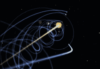 的确太阳系在银河系中是螺旋形式前进,但并不是完全正确的,画面中是以平滑的轨道运动,事实上太阳系在银河系盘面而是以波浪的形式上下做穿插运动。
