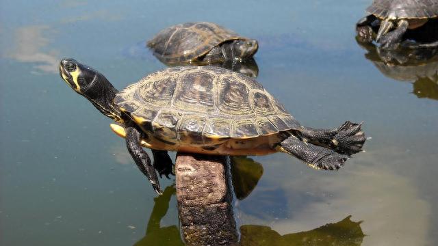 只不过,由于每种龟的生存环境不同,所以在某些细微结构方面,还是存在一定差异的。比如海龟的龟壳就比较扁,而且还呈现流线型,这样就能减少水中的阻力。
