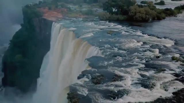 而到了雨季,那可就是另一番景象了,瀑布向上百万加仑的水从天上奔流而下一泻千里,而当瀑布被河间沿岛分割成数股后,溅起的浪花,可以高达三百米,在六十公里外就可以看到。