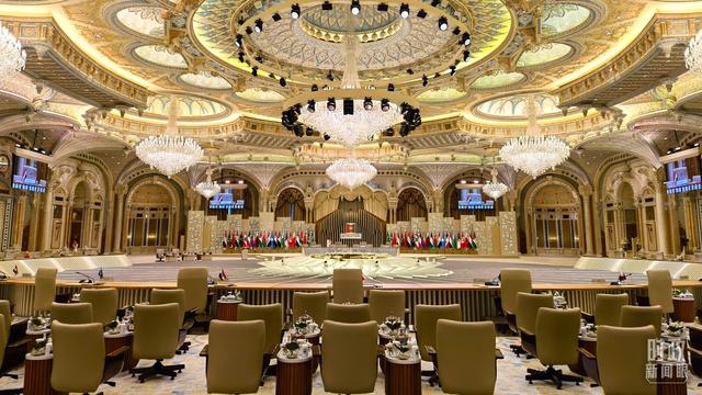 △中阿峰会开始前的现场。(总台央视记者马超拍摄)
