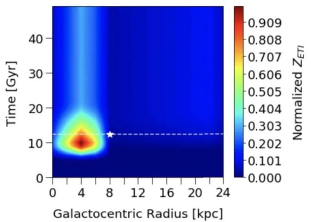 在这项新研究中,研究人员利用现代天文学和数理统计模型,绘制了银河系智慧生命出现与灭亡在时间和空间上的可能分布情况。