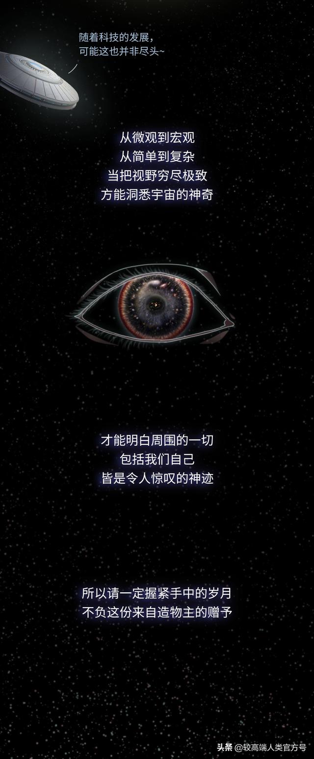 ?从微观看到宏观,不禁让人慨叹:哀吾生之须臾,羡宇宙之无穷。人类自诩为地球之主,可纵览宇宙的尺度,我们也不过沧海一粟,仍有许多未知之物。但尽管我们可能永远无法一窥宇宙的全貌,也不妨碍我们怀揣好奇砥砺前行。毕竟,身处深渊,也总要有人仰望星空。