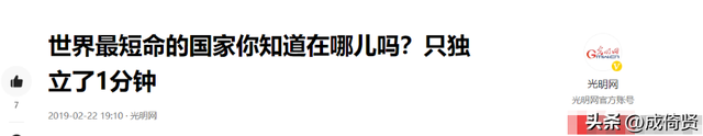 光明网 《世界最短命的国家你知道在哪儿吗?只独立了1分钟》 2019-02-22 19:10