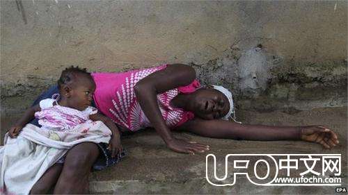利比里亚首都蒙罗维亚市郊,妇女为死于埃博拉病毒的亲属痛哭