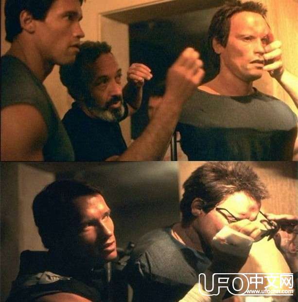 —— 某天在拍摄《终结者1》的间歇,施瓦辛格出去吃午饭,到了餐厅才发现忘了卸妆——一只眼睛没了,机器眼露在外面。类似“裸露”的装扮在《终极者2》中也有出现,据说曾把施瓦辛格的女儿吓到鬼哭狼嚎。