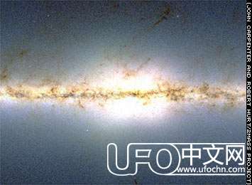 图:银河系照片。(扫校者注:中译本原书图片为“用全天空摄像机拍摄的银河系合成的照片—— B. 博光和隆特天文台提供”。由于扫描质量问题而更换。)