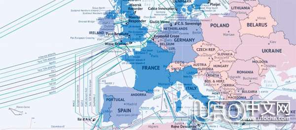欧洲海底电缆图(电信地理公司)