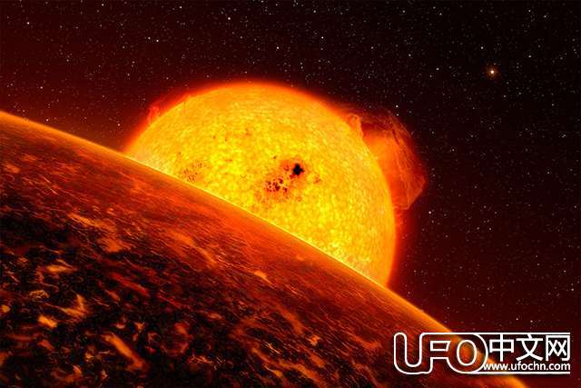 然而,科罗-7b甚至比开普勒-10b更夸张,表面温度高达近2000℃。这颗被烘烤到外焦里嫩的行星,是2010年由法国的科罗系外行星探测器(CoRoT)发现的,距离地球大约480光年,直径比地球大70%,质量约为地球的5倍。这颗行星原本可能是一颗土星大小的行星,后来被烤干了成了现在这个样子。它绕恒星旋转的轨道极近,在它的表面,那颗恒星看起来要比我们的太阳大得多,使得它的向阳面处于熔融状态。