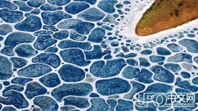 每年夏天,高温让大量湖水蒸发,湖底的矿物质也逐渐裸漏出来,形成许多白色镶边界线和浅池,湖水的色彩也非常神奇,像调色盘一样。