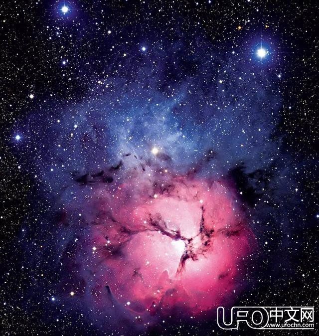三裂星云(M20,NGC6514)三裂星云直径约为40光年,距地5,200光年,含有足够的气体和尘埃生产成百上千像太阳一样的恒星。
