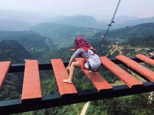 这座风景区里有一个很大的旅游项目,就是跨这个横栏了,架在高空当中,有恐高的人可千万不要去轻易的尝试这个项目。