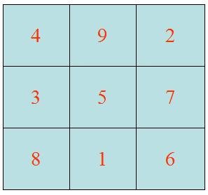 他们发现,这个图案每一列,每一行及对角线,加起来的数字和都是一样的,这就是我们所称的幻方。