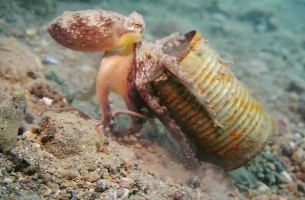 章鱼这种生物对各种各样的器皿十分喜好,总是希望自己可以藏身于这种中间空的器皿之中。有研究者对章鱼展开研究之后发现,这种生物居然还有概念思维,能够独自解决一些十分复杂的问题,而且也正是因为这种章鱼有着如此能力,才让其有了可以两足行走的能力。