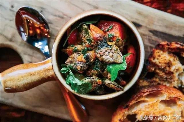 鹅颈藤壶与橄榄油、红葱头、罗勒和胡椒一起翻炒,淋上白葡萄酒和鲜奶油小火炖煮,最后挤上些许柠檬汁,就着面包一起入口。即使是浓重的口味也掩盖不了藤壶本身的绝美,那股浓缩的海味会在口中久久萦绕。