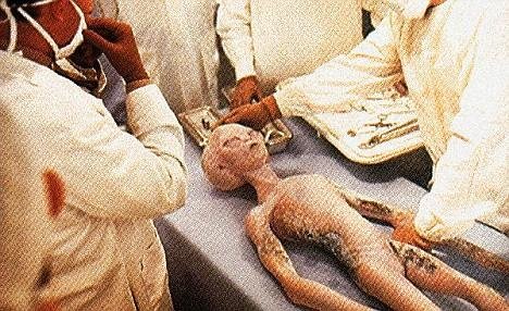 说到菲利普·科索,其实在二战中的一个间谍。但因为他在罗马期间曾为犹太人安排一条安全通道,拯救了上万名犹太人的生命,所以也算是个二战英雄。1947年,当罗斯威尔事件发生的时候,这个二战英雄正在里利堡军事基地进行继续再教育,准备深造好了往上提,所以也算是论功行赏吧。要说这里利堡军事基地有点特殊,不光搞教育,还搞科研,美国境内凡是有疑似外星UFO的残留物,最终都送往这里。所以,在罗斯威尔事件发生后,那个UFO的残骸也不出例外地送到了这里。赶上菲利普·科索值夜班,他就利用职务之便,去探查一下那些残骸,并且去看看那些传说中的外星尸体到底是不是人体模型。结果让他大吃一惊,那是他从未见过的生物。它看起来像是瘦小的人形尸体,大脑袋大眼睛,不过身材不高,而且身体的外形也不像我们的身体这样宽厚。如果是人体模型的话,不可能做的这么不成比例,而且丑得根本就不像人!而且,按照据菲利普·科索描述,这些尸体与传说中的ET(外星之外的生物)很相似。所以他断定,这些就是外星文明的尸体。