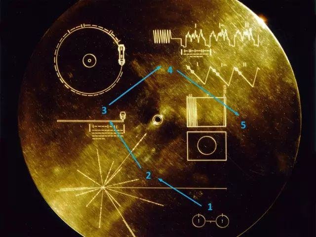 于是,卡尔·萨根带领一组团队,构造出了一套以宇宙真理为基础的符号化说明书,刻印在金唱片的外壳上,帮助外星文明重构金唱片中的信息,了解这个依旧存在或早已消失的生命星球。