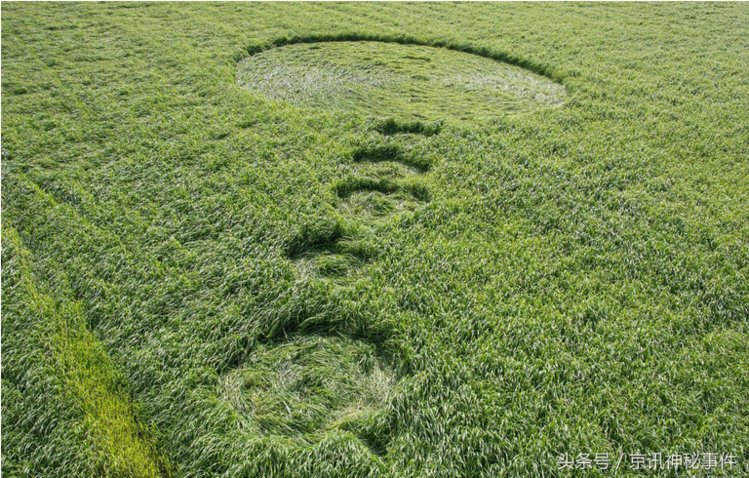 这些草圈图案与之前大量的麦田圈图案相似,外型上看并无奇特之处。照片上看,人文的可能性不大,周围的草并未有损坏,哪怕一点点。人走过来至少会踩坏一些草留下痕迹,白天不可能做这件事。
