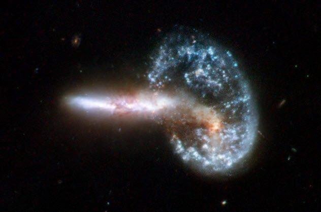 想象一下你明早起床发现整个世界都停电了,而且无法恢复,整个电网都被摧毁。太阳风暴形成于太阳表面,通常不会对地球有什么影响,但有时候它所释放的磁能可以到达地球,即日冕物质抛射,这会产生一系列不可测的结果,最可能的是电网的超负荷坏损。其实在1859年的时候就发生过类似事件,虽然损失很微小,只是烧坏了电报机上的纸张而已,但科学家警告说在当今社会,这样的一场太阳风暴会带来很大的损失,比如长期断电。7 星系碰撞