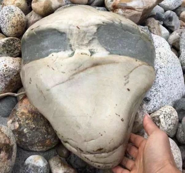 这一天,大叔吃饱没事做就到田里去走一走,走着走着就来到了一处满是石头的河边。一开始大叔也没有去介意这些石头,在大叔准备离开的时候就看到了自己脚下的石头,有一块很大的,而且长得有点像是外星文明的脸型。