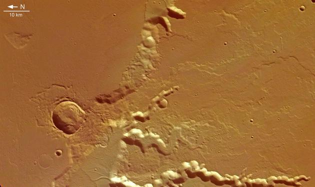 图中是欧洲航天局火星快车探测器拍摄的梅杜莎槽沟层,它可能是太阳系最大规模的火山喷发形成的,并非之前一些人猜测的是外星UFO碰撞地点。