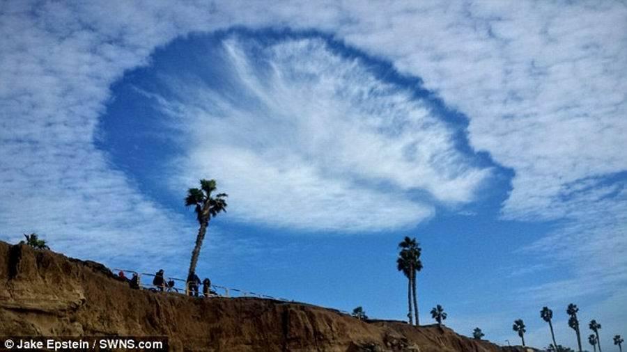 一个巨大的UFO状云层突然出现在美国加州海滩空中,一些目击者将其称为独立日云。
