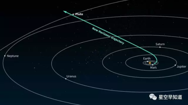 新视野号探测器飞向冥王星的飞行路径,飞往冥王星的路很长,我们花费了整整9年的时间才抵达。来源: NASA