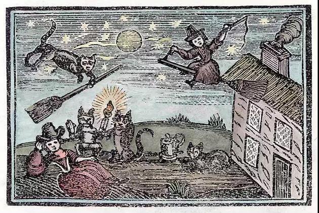 在这幅木刻版画中,17世纪的猫被认为是女巫的同类。图源:Mary Evans Picture Library