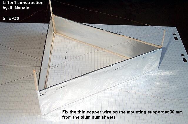 下面说一下其原理,一种解释是:高压电在铜线周围产生电离的正离子,带电空气离子涌向带负电的铝箔产生离子风然后反推三角飞行器使其升空。