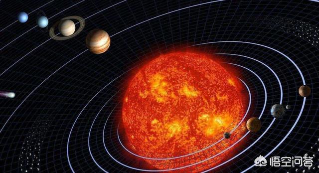 太阳系除了太阳,有八大行星。八大行星围绕太阳进行公转,轨道都是椭圆,个别轨道接近正圆。由于太阳本身也在围绕着银河系高速转动,所以八大行星的实际运行轨道是呈现出螺旋上升的态势。除此之外太阳系的八大行星之间距离也不平均,可以用天差地别来形容。越是处于太阳系边缘的行星,相隔距离越远。太阳和地球的距离是1.496乘以10的八次方公里,被定义为1个标准天文单位。而海王星和太阳的距离是4.504乘以10的9次方公里,是30.1个天文单位,天王星是19.1个,土星是9个。