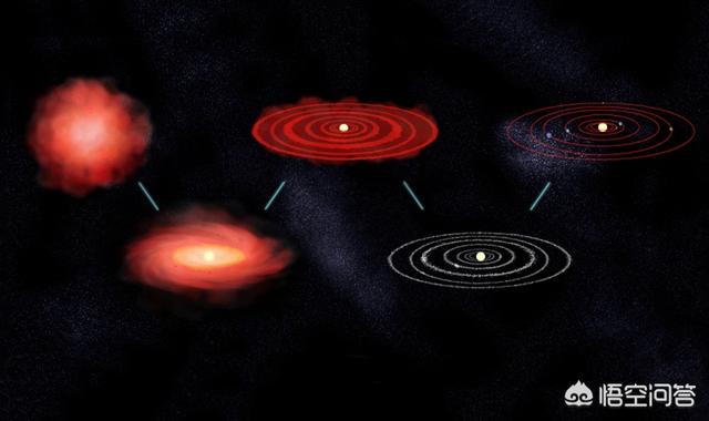 最终,星云中心形成了太阳,而绕着太阳旋转的物质会在引力作用下结合成各大行星及其各种小天体。因此,从相同的原行星盘中形成的行星,它们的公转轨道几乎是共面的。
